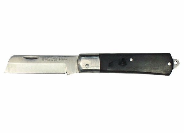 直刃,整体不锈钢,黒木手柄,手感好,可折叠。刃部硬度:50-52