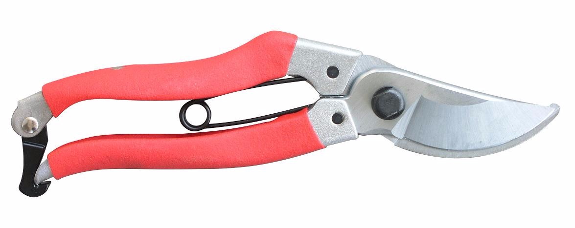 1.材质:SK5刀头,金属手柄,手柄包塑; 2.刀头硬度:HRC58-60; 3.剪切范围:直径18MM以下的鲜树枝或者直径10MM以下的干树枝; 4.适用于采果和较轻型的整枝工作。