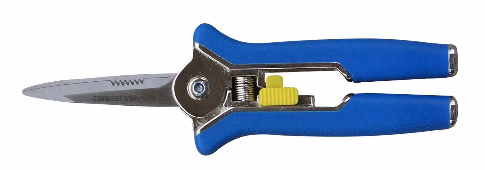 1.材质:不锈钢刀头,锌合金手柄,手柄包塑。 2.刀头硬度:HRC50-52。 3.剪切范围:直径10MM以下的鲜树枝或者直径6MM以下的干树枝。 4.适用于采果和较轻型的整枝工作。