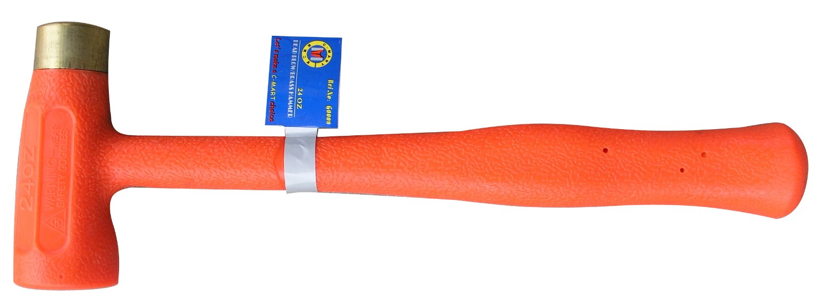 锤头一侧黄铜,一侧为PVC;整体PVC包裹,手感舒适;适用于装潢、安装、板金等工作。