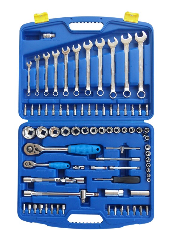 内含工具包括:7个6.3mm公制短套筒:7、8、9、10、11、12、13mm;3个6.3mm一字批头套筒FD4、FD5.5、FD7mm;2个6.3mm十字批头套筒:PH1、PH2;2个6.3mm米字批头套筒PZ1、PZ2;4个6.3mm六角批头套筒:HW3、HW4、HW5、HW6;7个6.3mm星型批头套筒:TX8、TX10、TX15、TX20、TX25、TX30、TX40;1个6.3mm棘轮扳手;2个6.3mm接杆:2"-4";1个6.3mm万向节;1个6.3mm选举手柄;1个6.3mm软性接杆;1个6.3mm滑行杆;15个12.5mm公制短套筒:8、10、12、13、14、15、16、17、18、19、22、24、27、30、32mm;1个12.5mm棘轮扳手;2个12.5mm接杆:5"-10";1个12.5mmw万向节;2个12.5mm 火星套筒:16-21mm;1个12.5mm 8mm批头接头;1个10mm三用接头 3/8"F*1/2"M;3个8mm批头:FD8、FD10、FD12;2个8mm批头:PH3、PH4;2个8mm批头:PZ3、PZ4;4个8mm批头:HW8、HW10、HW12、HW14;4个8mm批头:TX40、TX45、TX50、TX55;11个两用扳手:8、9、10、11、12、13、14、15、16、17、18、19mm。