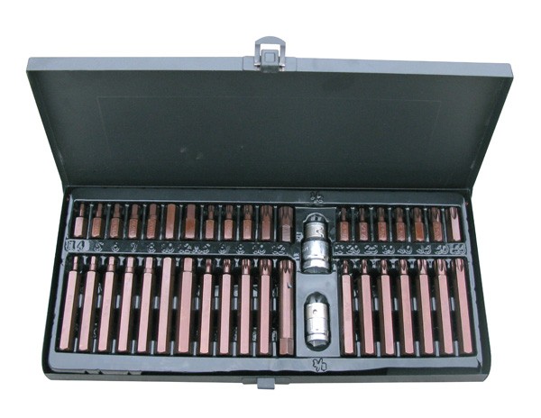 内含工具包括:7支六角短批头(H10*30L):H4、H5、H6、H7、H8、H10、H12;7支六角长批头(H10*75L):H4、H5、H6、H7、H8、H10、H12;5支梅花短批头(H10*30L):M5、M6、M8、M10、M12;5支梅花长批头(H10*75L):M5、M6、M8、M10、M12;7支星型短批头(H10*30L):T20、T25、T30、T40、T45、T50、T55;7支星型长批头(H10*75L):T20、T25、T30、T40、T45、T50、T55;1支3/8"DR.扣环;1支1/4"DR.扣环。