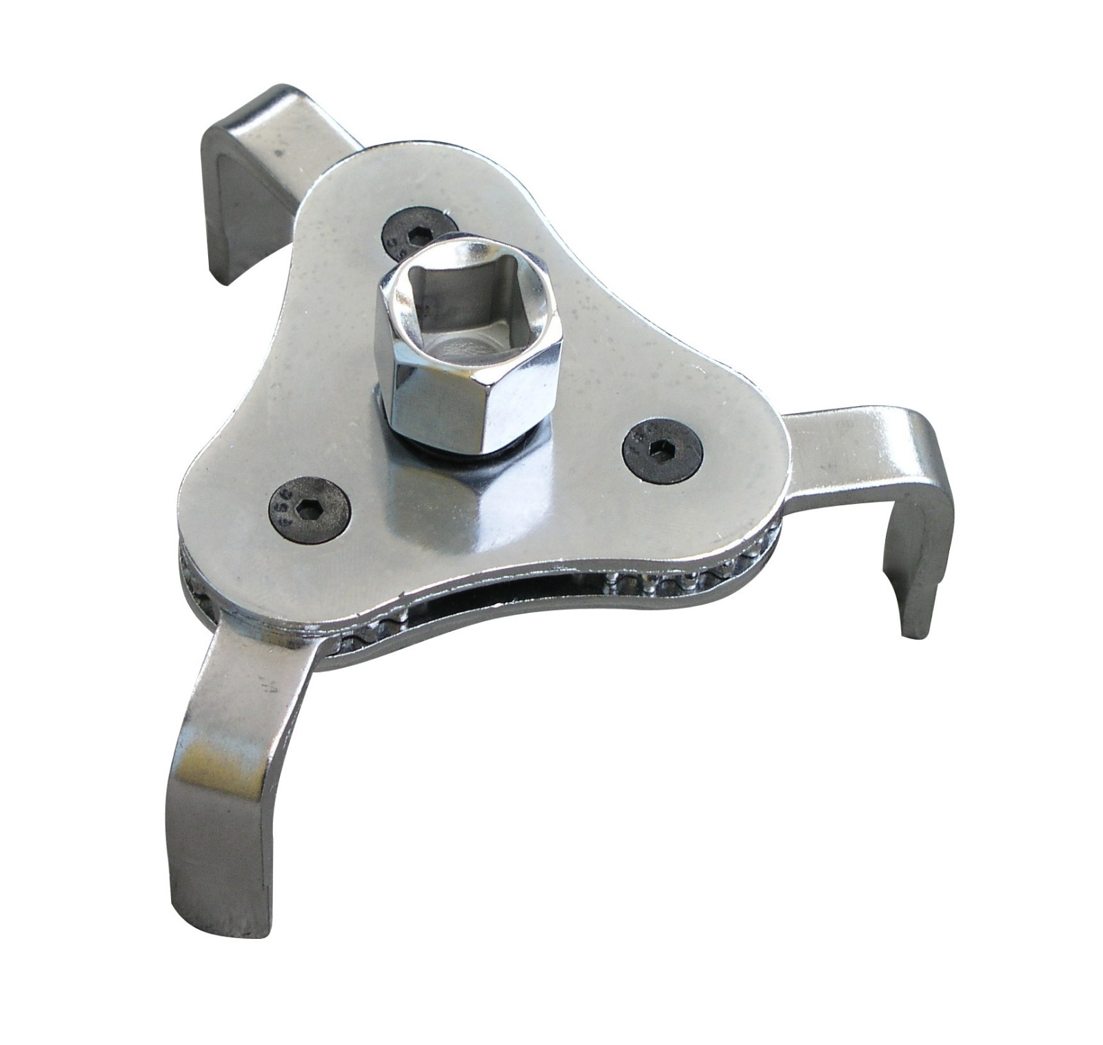 1.适用于1/2"DR.驱动工具或13/16"的旋柄; 2.可拆卸120mm直径以内的滤清器; 3.正反面板为优质锰板,精抛镀GR处理; 4.三脚优质合金板冲压,经过淬火镀GR处理; 5.硬度 HRC30-40。